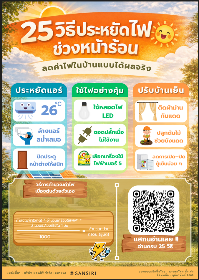 จัดทำบอร์ดเพื่อให้ข่าวสารความรู้เกี่ยวกับสภาพอากาศร้อนและการประหยัดพลังงาน